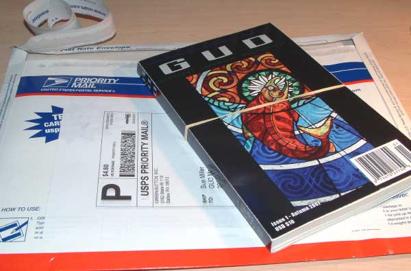 In other news, as you might have heard, the United States Postal Service turned us a nasty. Postage has gone UP. Ground rates to foreign soil have evaporated. Everything must be sent airmail, overseas. What that means is that, unfortunately, the shipping surcharge has gone up for anyplace NOT UK or Australia (where some kind folks have offered to accept bulk shipments and remail for us). It's now an additional $6 to mail GUD elsewhere in the world, per shipment. Sigh. What a blow for us, just as we were planning worldwide domination.